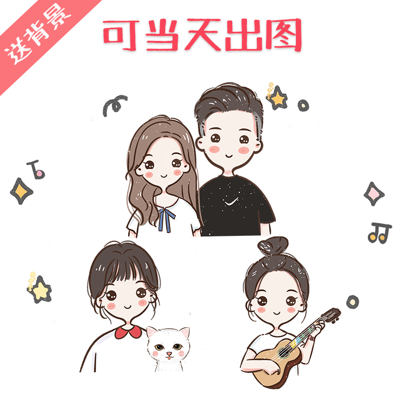 q版手绘头像定制卡通人物形象情侣真人照片设计图案漫画微信头像热门设计联盟服务商