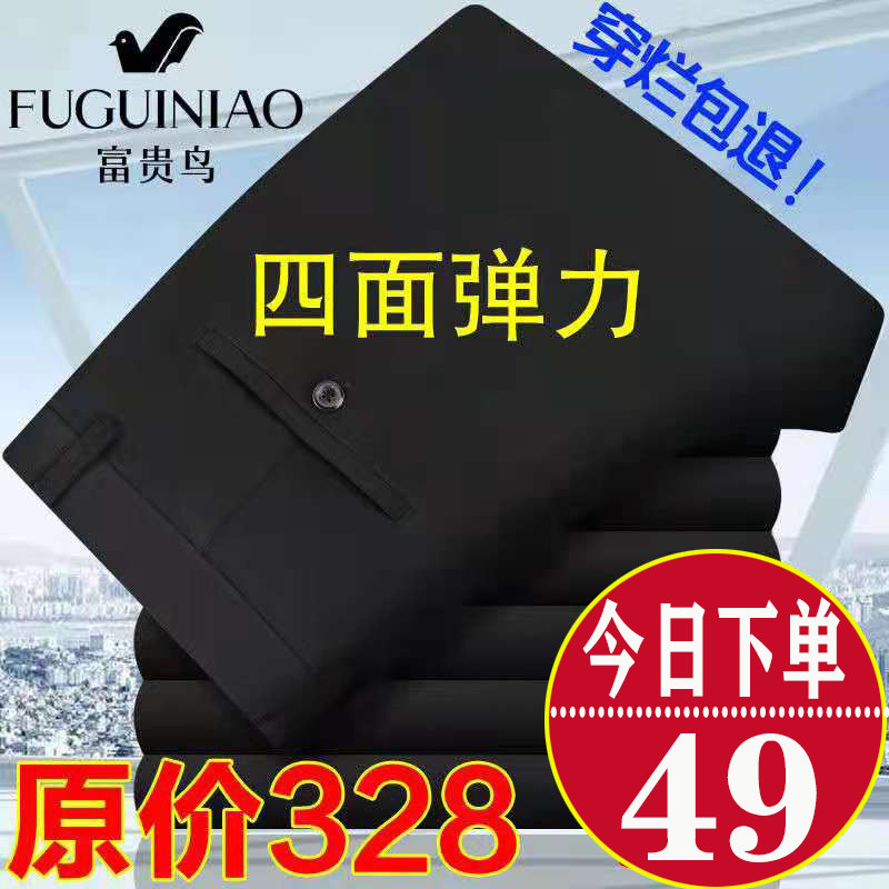 富贵鸟男裤秋冬加厚加绒直筒商务休闲裤中年高力免烫中高腰长裤热门设计联盟服务商