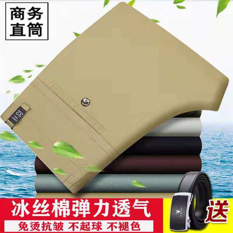 富贵鸟夏天薄款男裤冰丝棉休闲裤宽松力直筒免烫中老年商务男裤热门设计联盟服务商