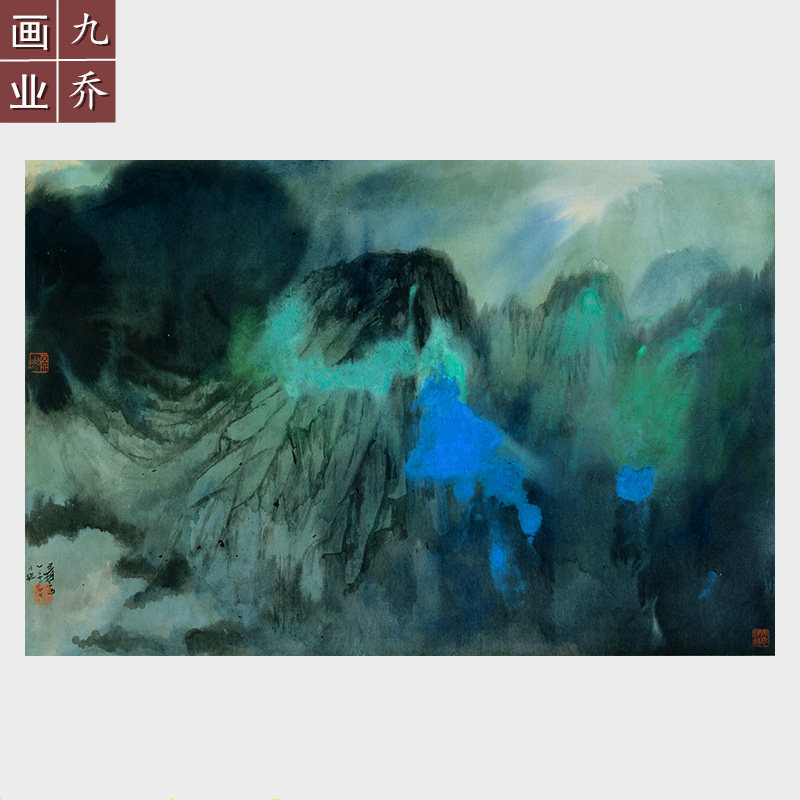 张大千青峰云起泼墨国画山水画横幅小品字画复制品未装裱宣纸画芯热门设计联盟服务商
