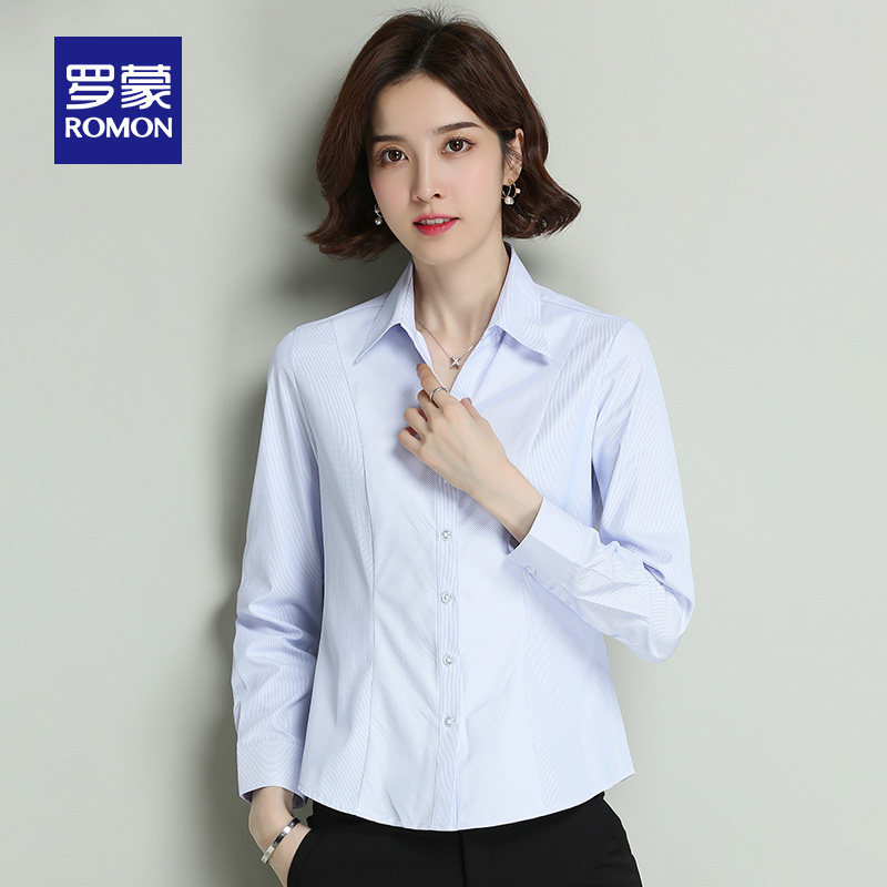 【团购】Romon/罗蒙长袖衬衫女斜条纹工装衬衣商务休闲翻领职业装热门设计联盟服务商