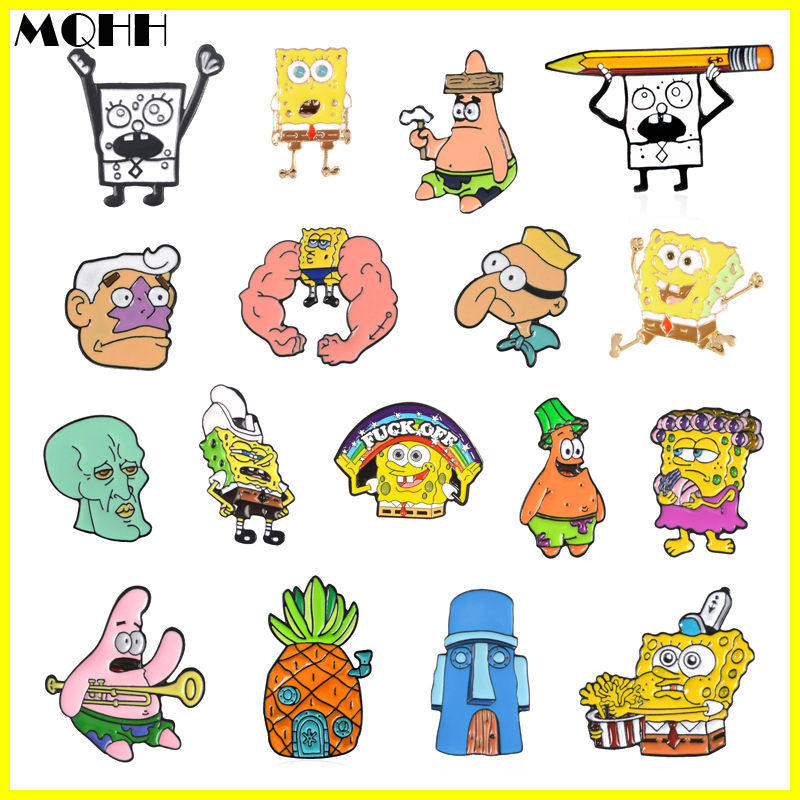 MQHH 卡通动漫影视海绵宝宝派大星胸针肌肉搞怪表情菠萝徽章别针热门设计联盟服务商
