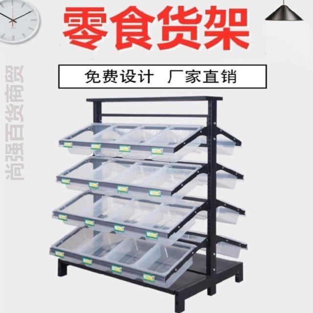 超市散装食品货架置物架展示柜干果架透明盒小食挂盒架子商场靠墙热门设计联盟服务商