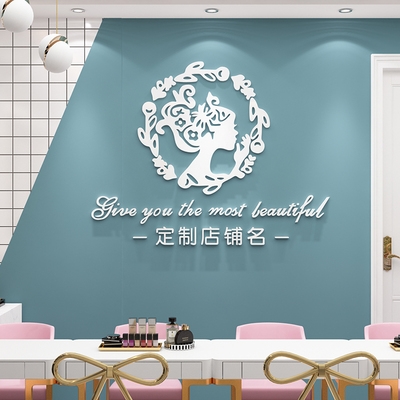 美容院装饰品大厅房间布置前台形象背景墙面设计贴纸创意logo网。热门设计联盟服务商