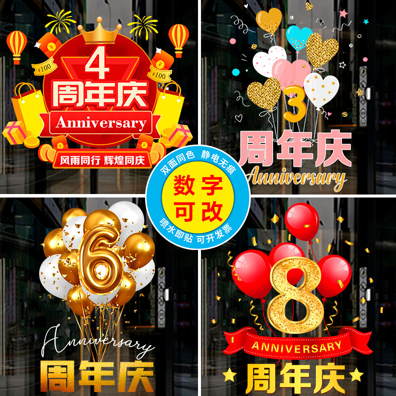 公司企业店铺周年庆装饰贴纸店庆玻璃橱窗布置门贴庆典可定制静电热门设计联盟服务商