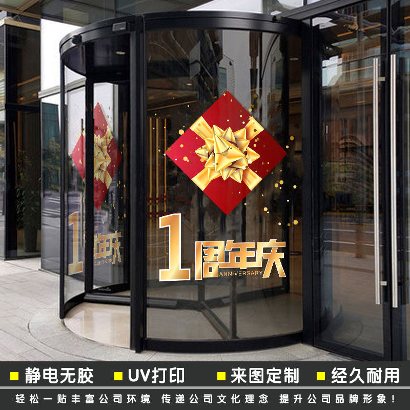周年店庆静电贴纸公司企业玻璃门贴橱窗装饰开业庆典贴画静电窗花热门设计联盟服务商