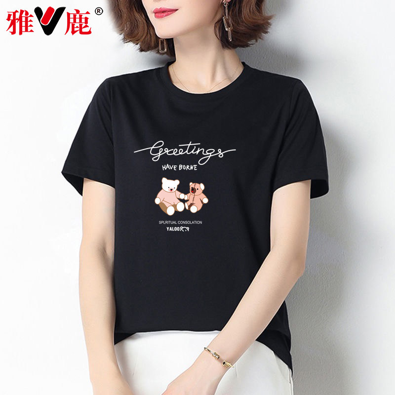 雅鹿100%纯棉短袖t恤小熊半袖打底衫女式全棉体恤衫内搭设计感洋气t血热门设计联盟服务商