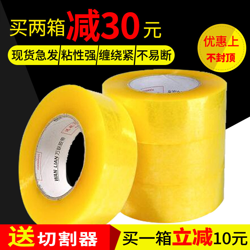 透明胶带大卷封箱胶纸淘宝快递打包封口包装加宽胶布米黄色封箱带热门设计联盟服务商
