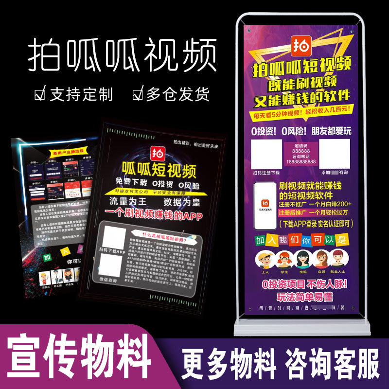 拍呱呱短视频名片宣传单展架贴纸不干胶桌布海报广V告物料设计定热门设计联盟服务商