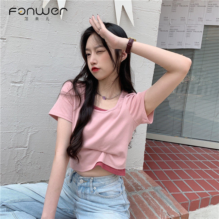 短款范未儿其他上衣春夏季2021新款高腰修身假甜辣妹风短袖t恤潮热门设计联盟服务商