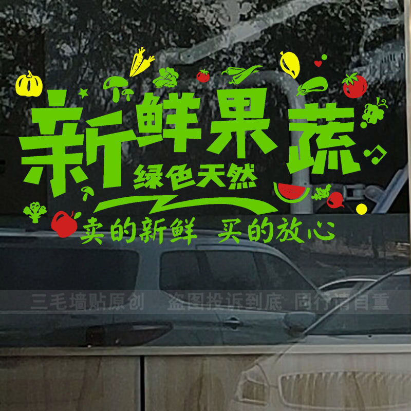 水果蔬菜店铺玻璃门贴纸装饰墙贴广告海报壁画玻璃门橱窗装修贴画热门设计联盟服务商