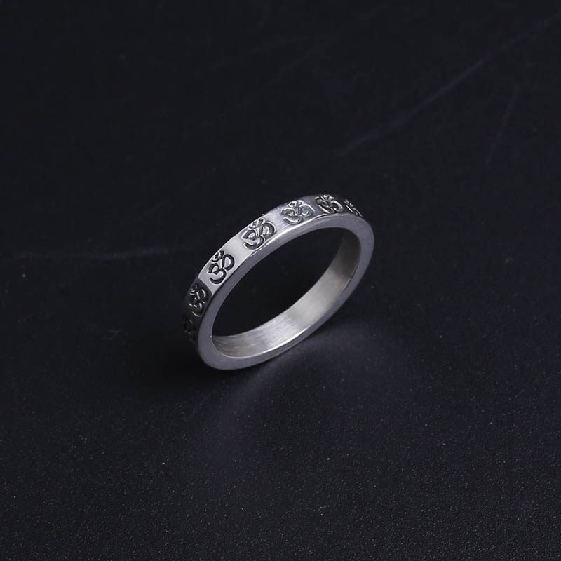 呈于小众设计OM瑜伽戒指女瑜伽标志戒指环999纯银手工订制热门设计联盟服务商