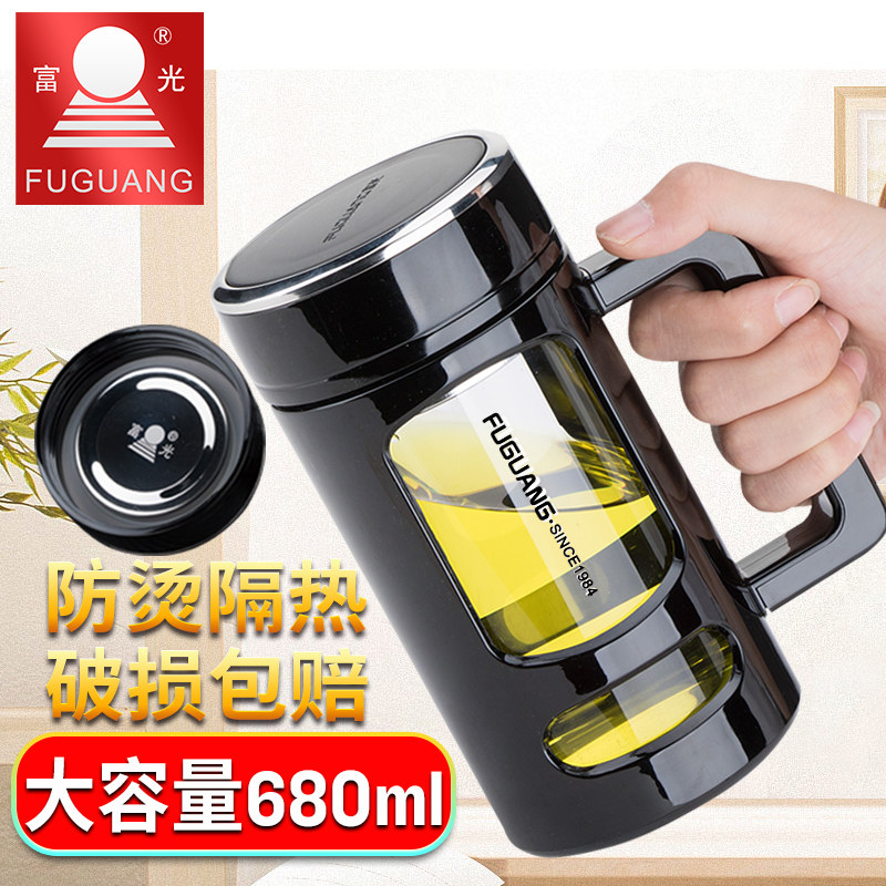 富光水杯玻璃杯便携男女办公室家用大容量带把手茶水分离泡茶杯子热门设计联盟服务商
