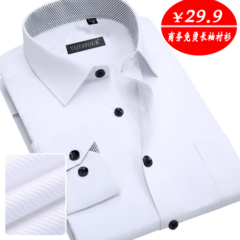 【天天特价】男士商务正装免烫休闲衬衫长袖修身纯色衬衣