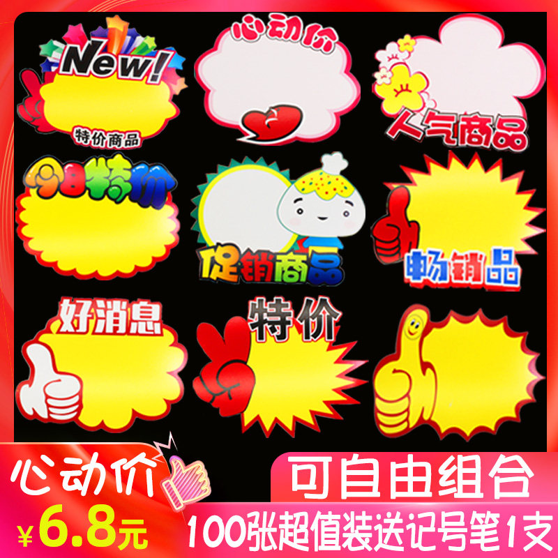 超市价格标签大号POP广告纸炸贴新款创意活动标签地摊商品特价标牌标价签水果促销牌定制惊价价钱展示架热门设计联盟服务商