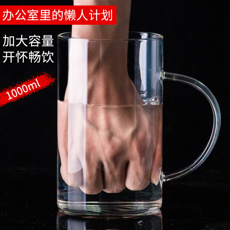 水杯大容量1000ml玻璃茶杯带把带盖夏天网红超大啤酒杯男生办公室热门设计联盟服务商
