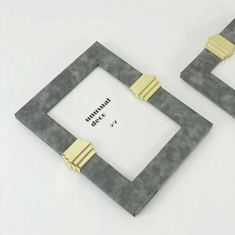 欧式轻奢现代简约灰色皮质相框摆件样板房售楼处卧室摆台软装饰品热门设计联盟服务商