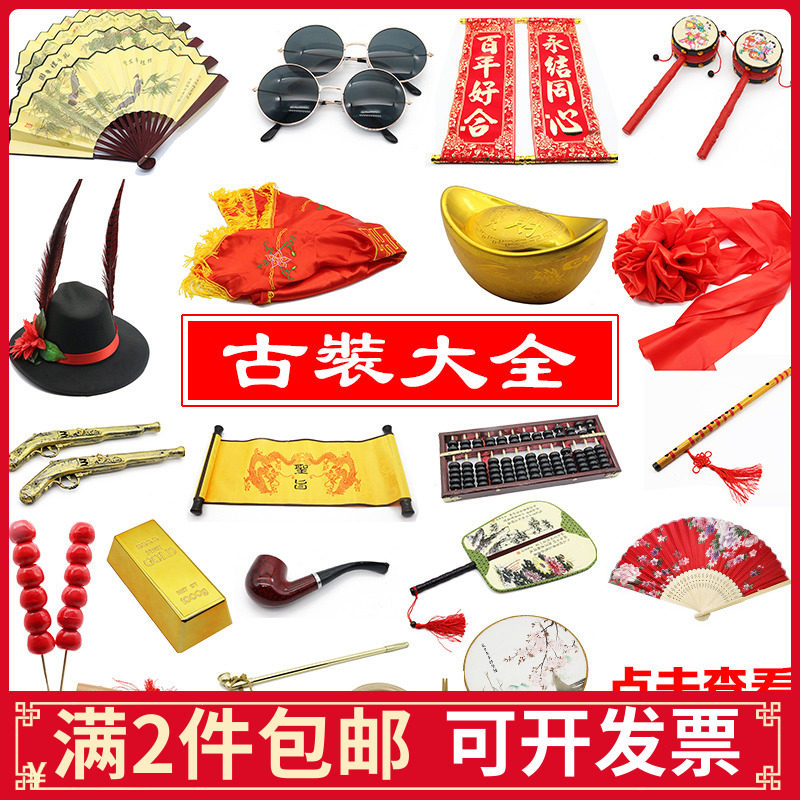 古装拍照道具影楼中式婚纱摄影道具帽子绣球墨镜折扇烟斗金元宝热门设计联盟服务商