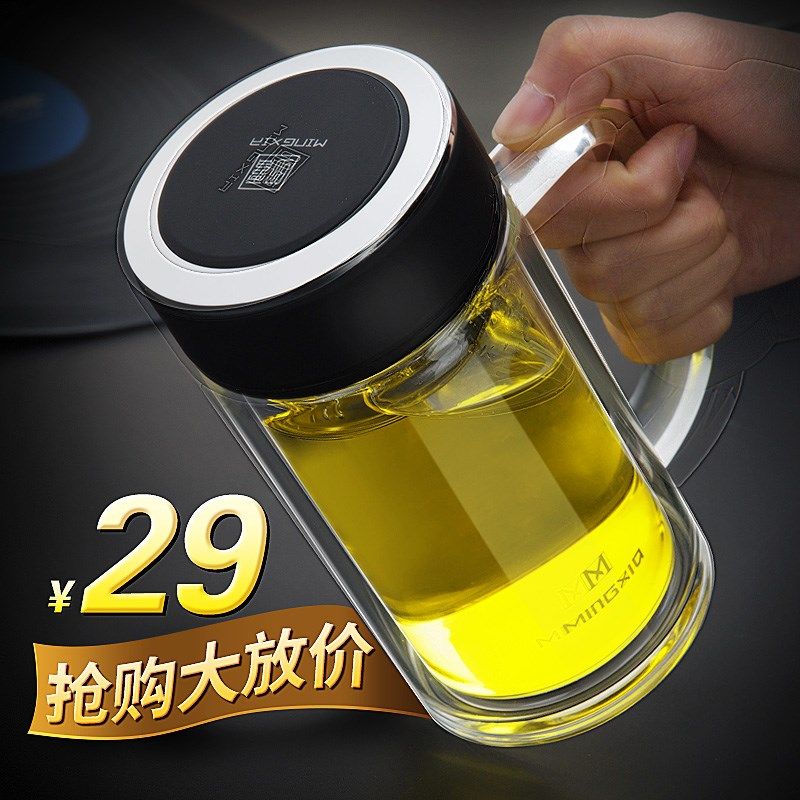 双层玻璃杯男女士办公室高档水杯带把手家用带庚滤网泡茶杯子热门设计联盟服务商