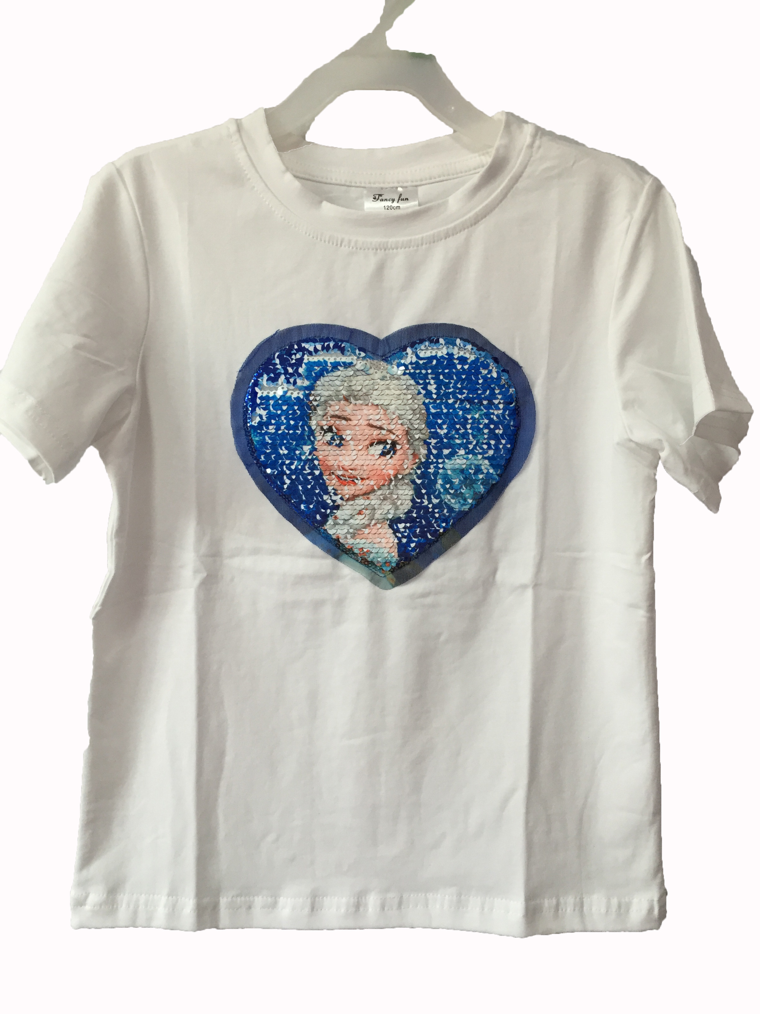 包邮100-140码抖音款翻翻亮片短袖女童冰雪奇缘纯棉可翻转亮T恤热门设计联盟服务商