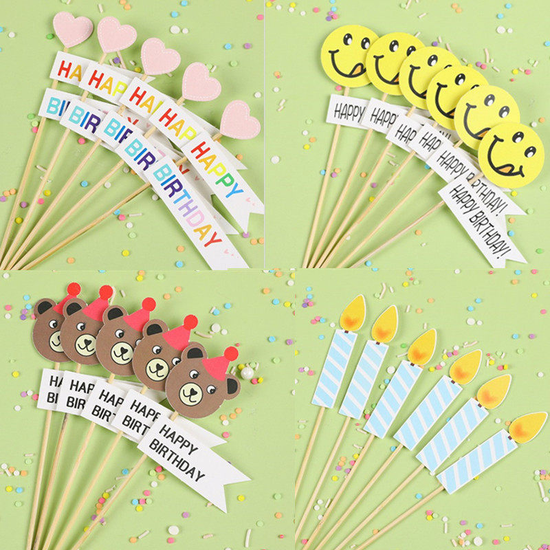 小清新笑脸蛋糕插件装饰 卡通小熊爱心横幅 蜡烛生日快乐甜品插牌热门设计联盟服务商