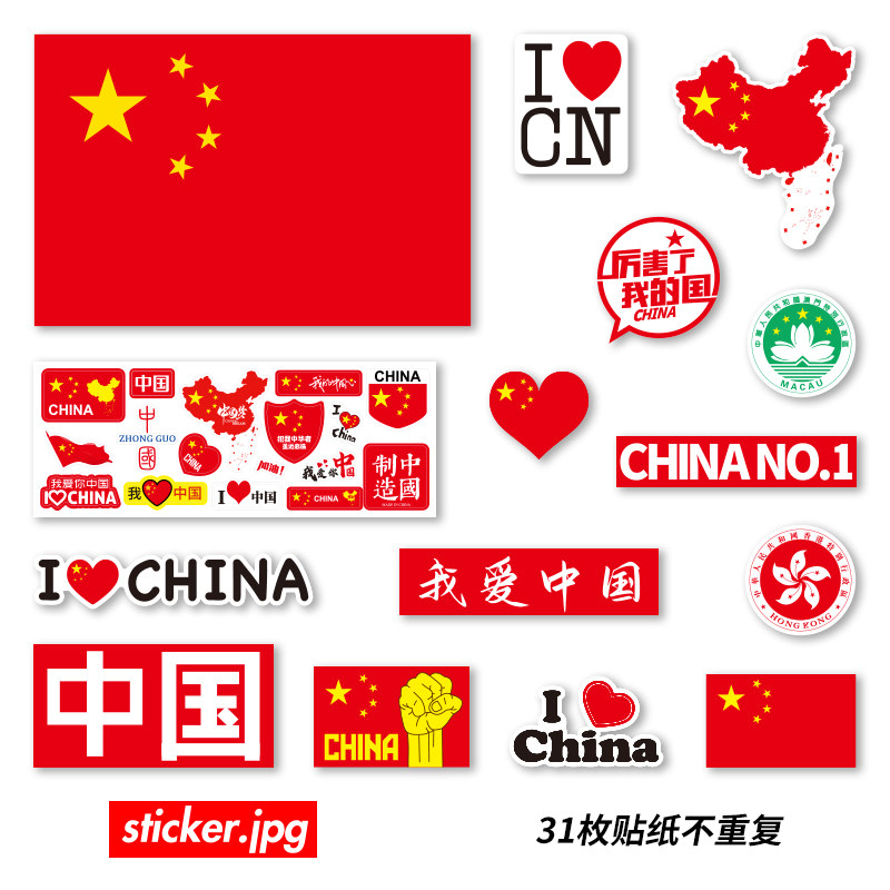 31枚我爱中国系列防水贴画旅行箱电脑冰箱手机头盔水杯中国风贴纸热门设计联盟服务商