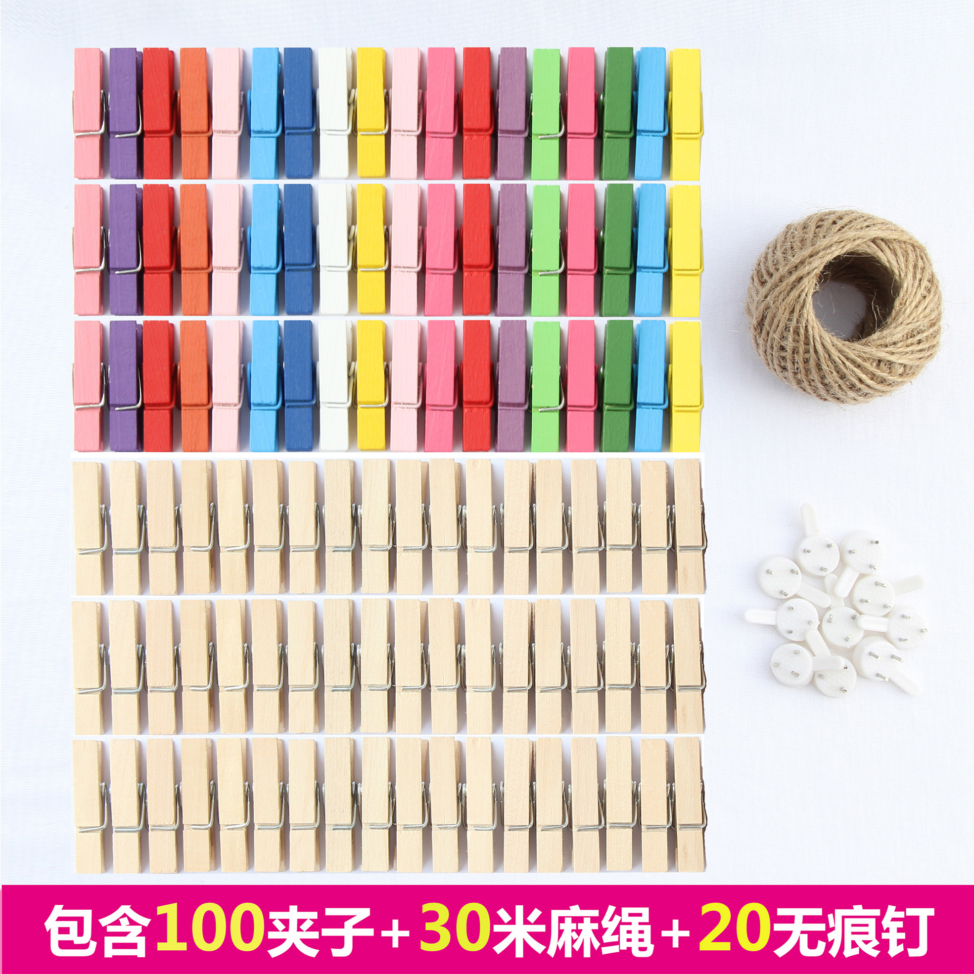 创意麻绳照片夹子 彩色原木色悬挂夹子照片墙木质相片夹小木夹子热门设计联盟服务商