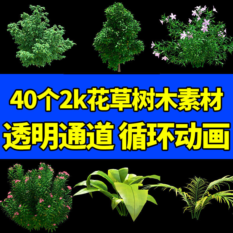 2K透明通道循环动画花草树木植物森林灌木绿叶特效视频素材1热门设计联盟服务商