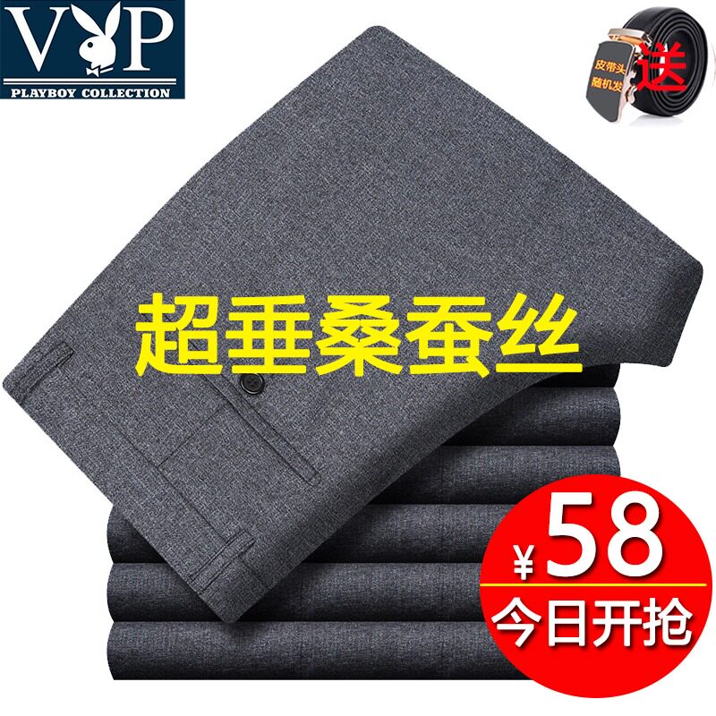 花花公子贵宾春夏桑蚕丝西裤中年商务直筒宽松休闲裤男羊毛免烫裤热门设计联盟服务商